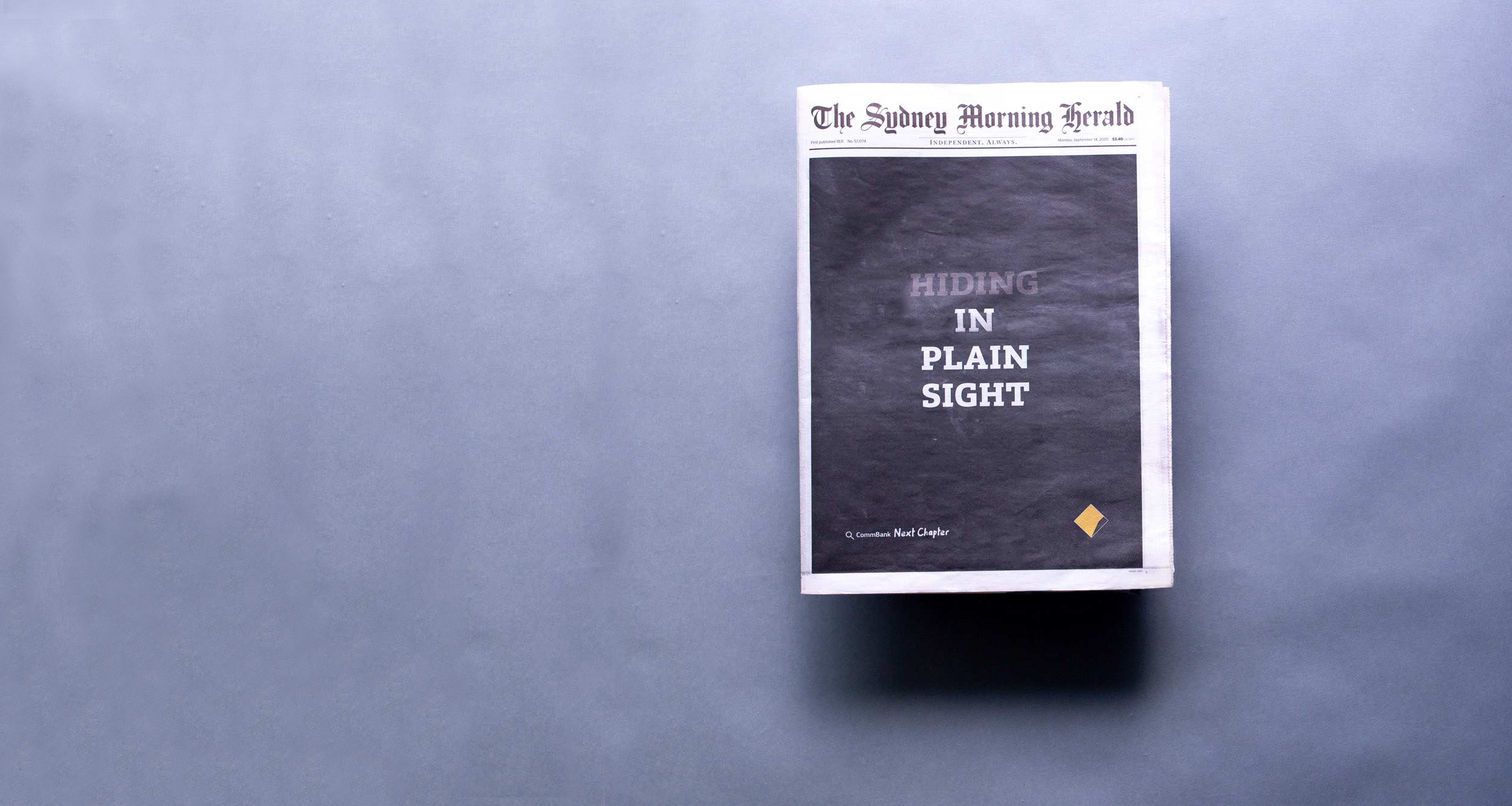 The high-impact wrap execution in The Sydney Morning Herald and The Age played on the power of simplicity, featuring the words Hiding in plain sight.